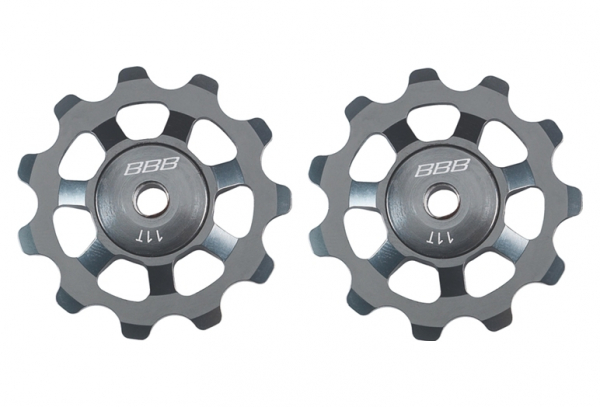 Rodillos de cambio 7075 de aluminio. Extra rígido para un cambio más preciso. Rodamiento de acero anular de alta calidad. 11 dientes Compatible con Shimano 9, 10 y 11 velocidades (excepto RD-7900 y 7970) / Mega Range, SRAM X0 / X9 / X7, Apex, Rival, Force y Red (> 2011) y Campagnolo de 11 velocidades.
